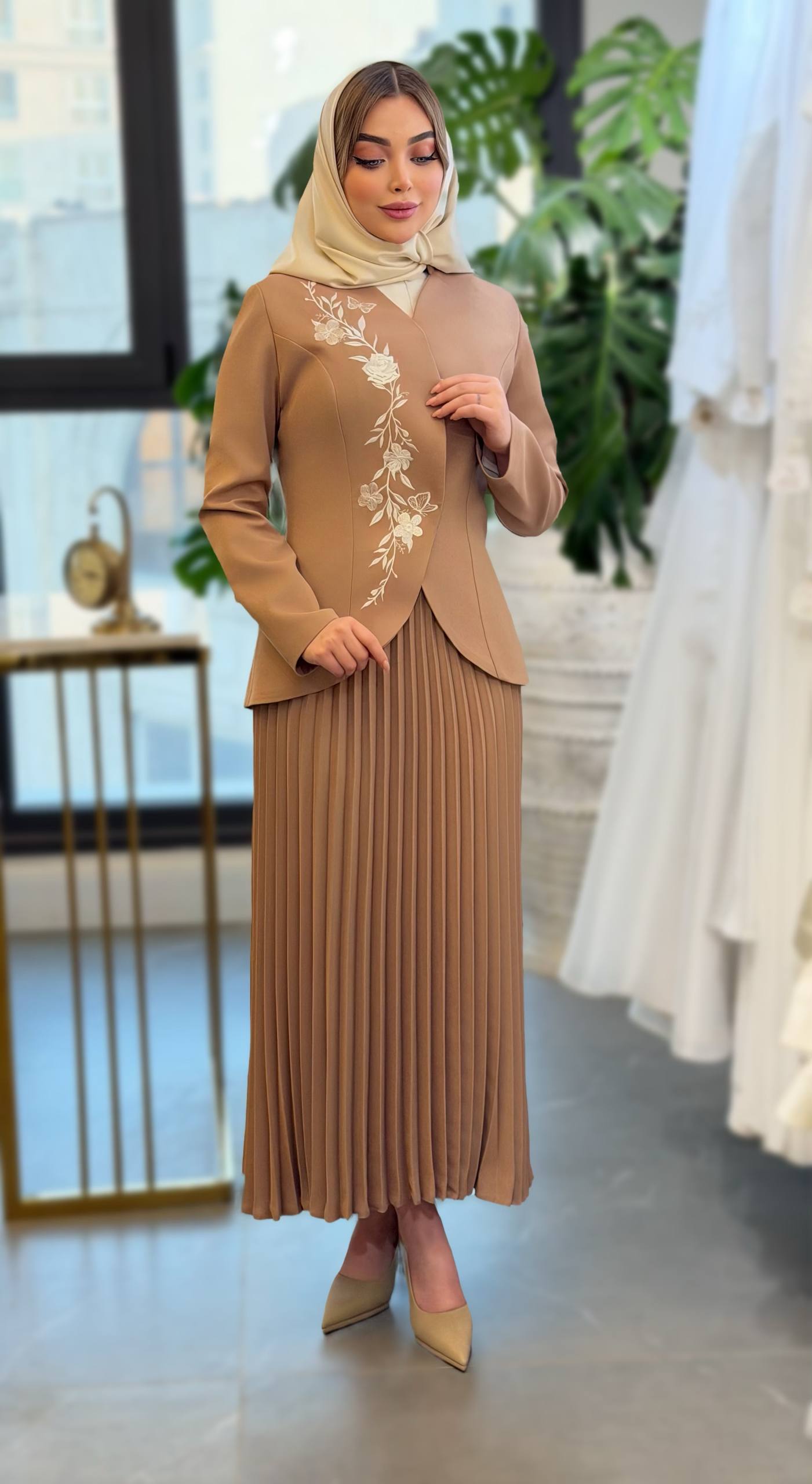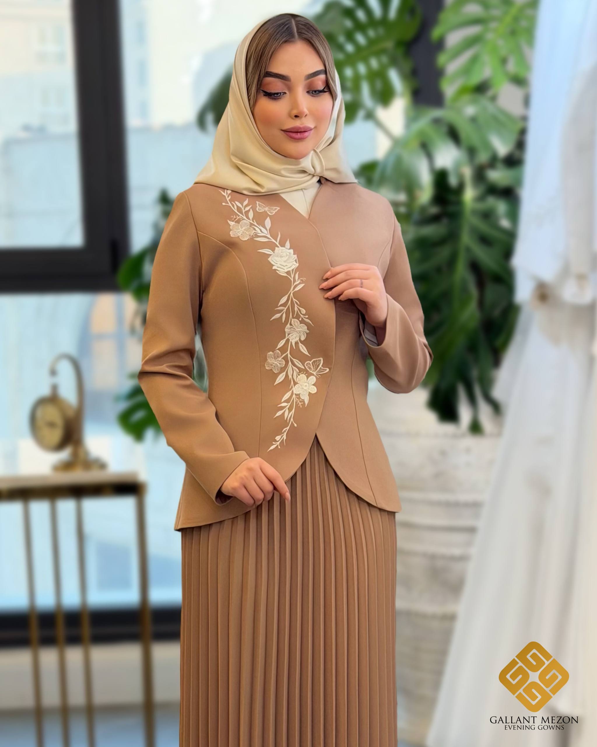 خرید کت دامن گلدوزی فاخر کرمی از مزون گالانت؛ به همراه قیمت، تصاویر و مشخصات. برای خرید و سفارش تماس بگیرید 09120626250