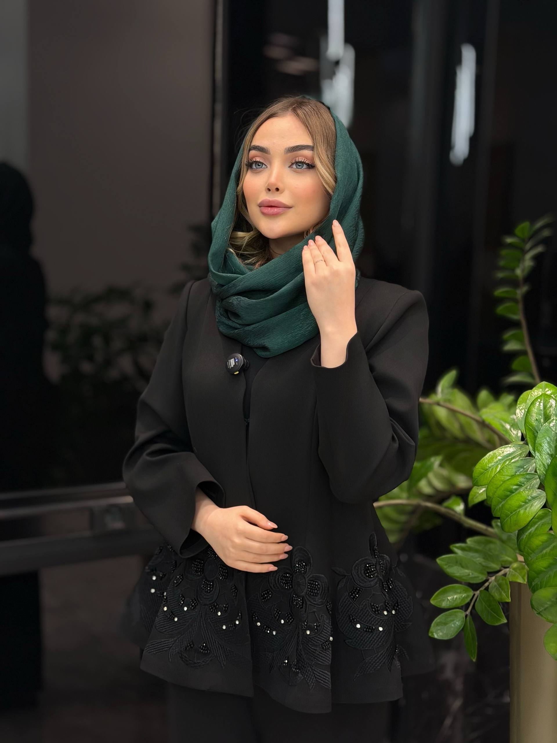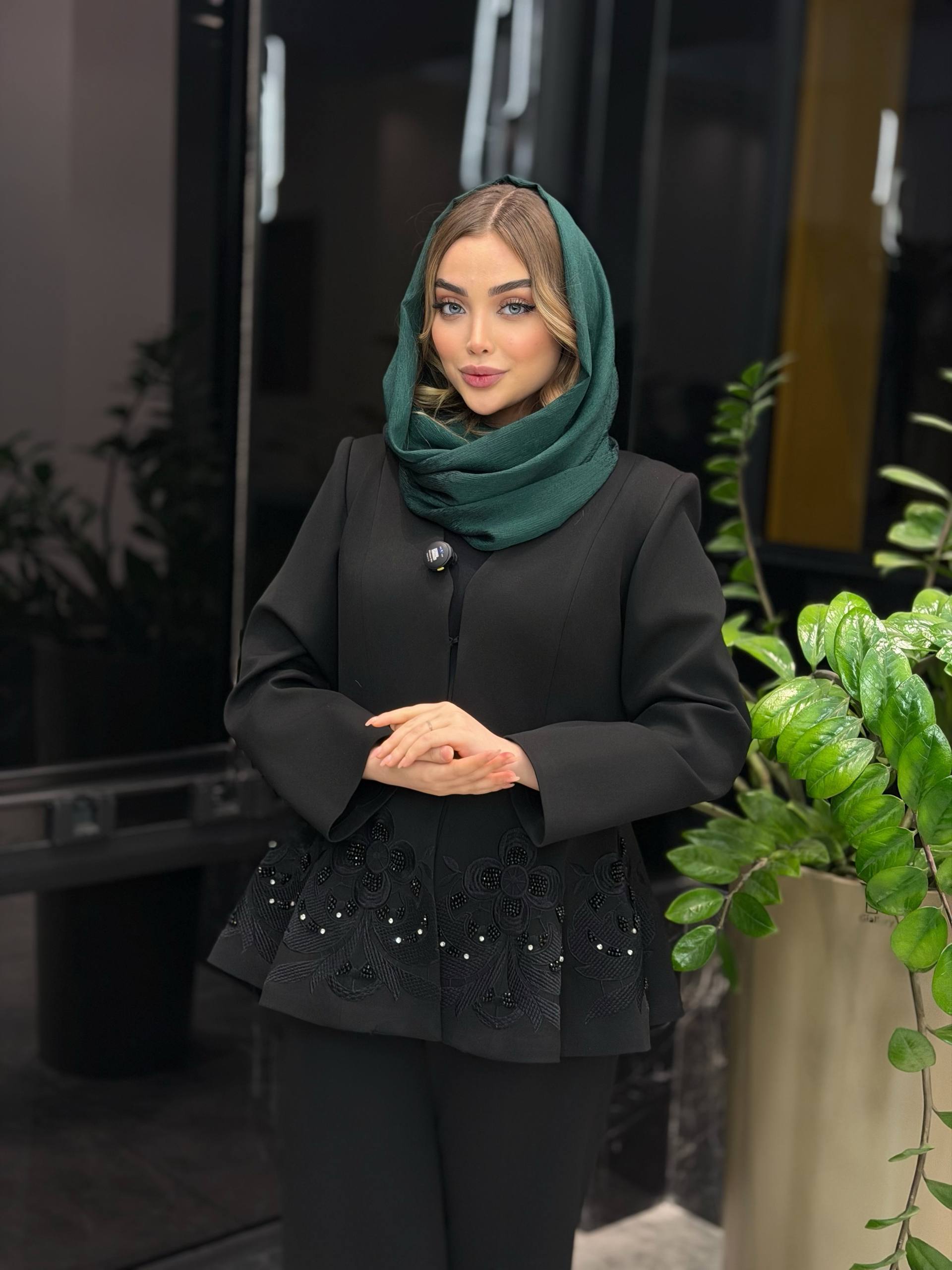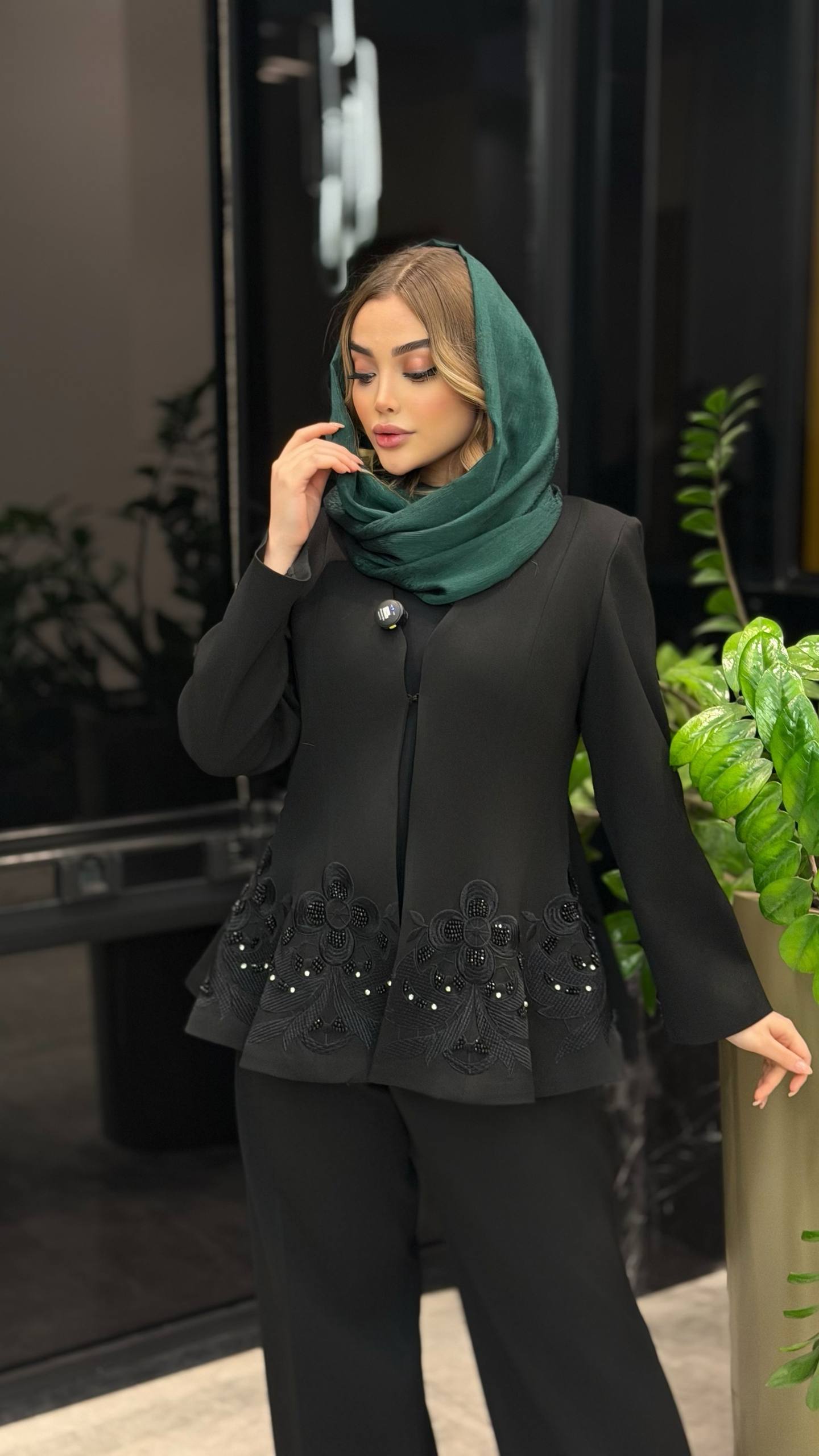 1 دیدگاه برای کت شلوار گلدوزی ابریشم مشکی و هنر بی نظیر دست جواهر دوزی
