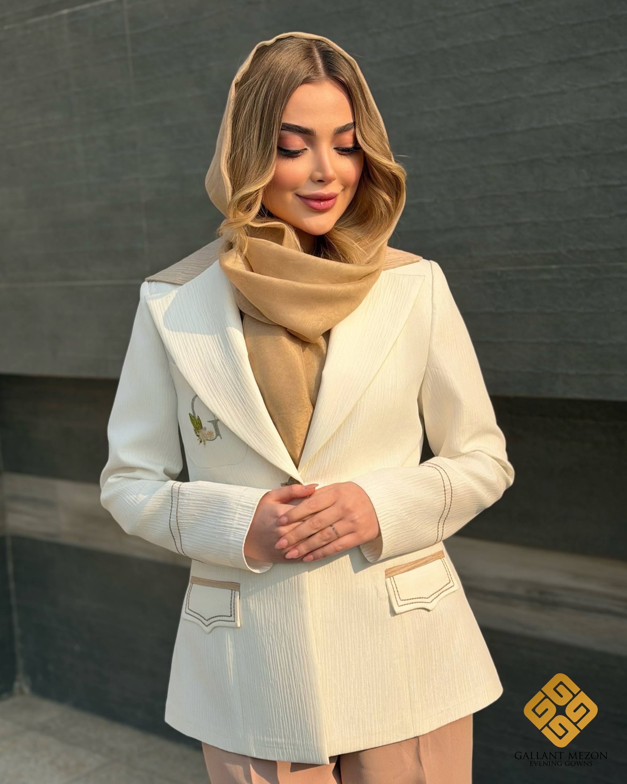 خرید کت شلوار گلدوزی فاخر سفید کرمی از مزون گالانت؛ به همراه قیمت، تصاویر و مشخصات. برای خرید و سفارش تماس بگیرید 09120626250